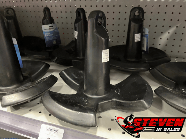 This type works well in sandy or muddy bottoms, once the flukes dig in, it holds firmly. It’s less effective on rocky or gravelly surfaces where the flukes can’t bite in cleanly. Fluke anchors also require a short length of chain between the anchor and rope, plus more overall line than other anchor styles, which can chew through your limited PWC storage space faster than you’d expect.